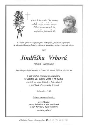 Smuteční oznámení - Jindřiška Vrbová