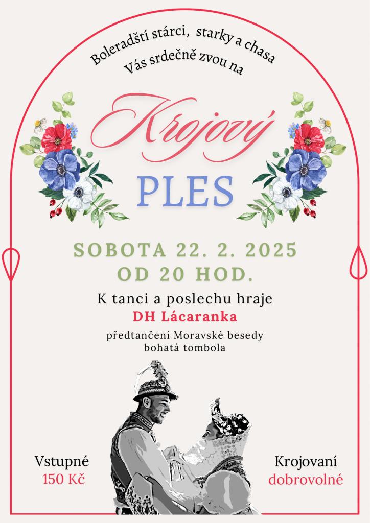 srdečně Vás zveme na Krojový ples, který se bude konat dne 22.2.2025 od 20:00 v sále ÚM.